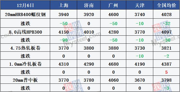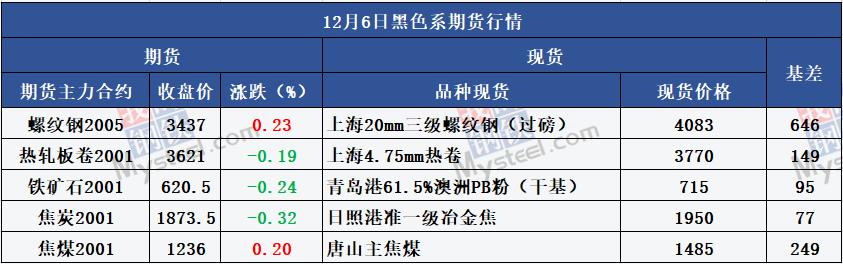 Industry News Building Materials Turnover: on December 6, the national traders of Mysteel building materials turnover of 167,100 tons, an increase of 26,300 tons from the previous trading day. Volume of iron ore: On December 6,987,200 tons of iron ore were sold in the main ports, down 1.58 percent from the previous week, and 1.293,200 tons a day on average last week, and 1.273,800 tons a day last month. Mysteel: It is estimated that in the next 13 weeks, the average weekly output of rebar steel of Mysteel sample enterprises will be 3.51 million tons, an increase of 360,000 tons per week, an increase of 11.5% , a peak value of about 3.7 million tons, a low value of about 3.2 million tons, and the output will remain high in the short term Two weeks before and after the Spring Festival there will be a significant reduction in production. Mysteel statistics: According to incomplete statistics, in November 2019,20 production capacity replacement plans were published / announced, involving 27.56626 million tons of newly built iron-making capacity and 29.095 million tons of steel-making capacity. The overhaul of Yunnan Yuxi Xianfu steel works is scheduled to overhaul three blast furnaces, two wires and one bar production line around December 10. The overhaul is expected to affect the production of 28,000 tons of molten iron in four days The output of wire rod is 15,200 tons, the output of thread is 0.8 million tons. 45 ports nationwide: iron ore stocks were 12,343.88, down 39.53 from the previous week; average daily discharge was 313.99, up 9.64. 230 Independent Coke enterprises sample: Capacity utilization 73.08% , down 0.18% ; average daily output 649,400 tons, down 0.1,600 tons; coke stocks 992,100 tons, down 120,600 tons; total coking coal stocks 15,077,200 tons, up 237,300 tons The average number of days available was 17.46, up 0.32 days. The average operating rate of 71 electric arc furnace steel plants in China was 74.24% , up 2.27% from last week and down 2.81% from the same period last year. Blast furnace operating rate of blast furnace: 79.09% , 0.81% , 2.79% , 80.94% , 1.06% , 2.20% , 89.88% , average daily hot metal output: 2.263,500 tons, Capacity utilization Compared with the same period last year, it increased by 29,600 tons and 61,400 tons. China Steel Association: In November, driven by expectations of a tight long bar, domestic market steel prices rose significantly, steel production has increased, iron ore demand strength increased, prices from the decline to the rise. As the market fundamentals are still oversupply situation, late iron ore prices continued to rise, will show small fluctuations. China Coal Association: With the new capacity of coal mines continue to release, new energy development level continued to improve, coal supply will further to the loose direction of change, the downward pressure on the coal economy has increased. Ministry of Ecology and Environment: December 5,13 cities in the beijing-tianjin-hebei region, 9 cities with good air quality, 4 cities with excellent air quality. Handan had the worst air quality, with an Aqi of 85 on 5 December, and Zhangjiakou had the best, with an Aqi of 34 on 5 December. Rizhao Bureau of Industry and Information Technology: the publication of Rizhao's three-year action plan (2019 -- 2021) to accelerate the expansion and quality improvement of industrial enterprises in the city, aims to cultivate about 500 new NATONG enterprises over a period of three years. It will lay a solid foundation for building a 500-billion-class advanced steel manufacturing industry, a 100-billion-class automobile complete vehicle and parts industry, and a high-end chemical industry. Henan Emergency Management Department: Issued "on the steel, aluminum processing industry in Henan Province on the safety of law enforcement spot checks, " scheduled December 9-13 on the steel, aluminum processing industry in Henan Province on the safety of law enforcement spot checks. 29 companies involved in Qian'an's plan to suspend production during December's tightening of air pollution control. Xingtai has issued an orange (II) alert for heavy pollution since 12:00 on 6 December. Taiyuan has decided to issue an orange alert for heavy pollution and activate a second-level response to the heavy pollution emergency plan (18:00 on December 5-24:00 on December 9) . The LüLIANG has issued an orange alert for heavy pollution weather, with a long flow of combined steel, sintering machines and pelletizing equipment shut down, and if the warning response time exceeds 120 hours, then shut down 50% or more of the production line, and blast furnace shut down 50% or more Blast furnace. Linyi has issued an orange alert for heavy pollution since 1600 hours on December 5 and a level II emergency response for heavy pollution has been activated since 1600 hours on December 6. Weifang has issued an orange alert for heavy pollution since 1200 hours on 5 December and activated a level II emergency response at 1200 hours on 6 December. From 20:00 on December 5, Tai'an has issued an orange alert for heavy pollution in Taishan district, Daiyue District Manzhuang town, Dawenkou town, Tianping Street, congee shop street, loude town, Ciyao town and Huafeng town in Ningyang County, and high-tech zones Emergency Response Level II has been activated since 1200 hours on 6 December 2019. Xiangyang has issued a Class III yellow alert for heavy pollution since 1800 hours on December 5. Guigang has activated the level I (red) emergency response for air pollution control from 00:00 on 7 December to 24:00 on 15 December. From December 1 to March 10,2020, Ningxia implemented peak shifting production in some key industries such as metallurgy, building materials, chemical industry and foundry. Pingding County, Shanxi Province released the "2019-2020 industrial enterprises staggered peak production work program" , proposed that the foundry melting equipment particulate matter, sulfur dioxide, nitroge
